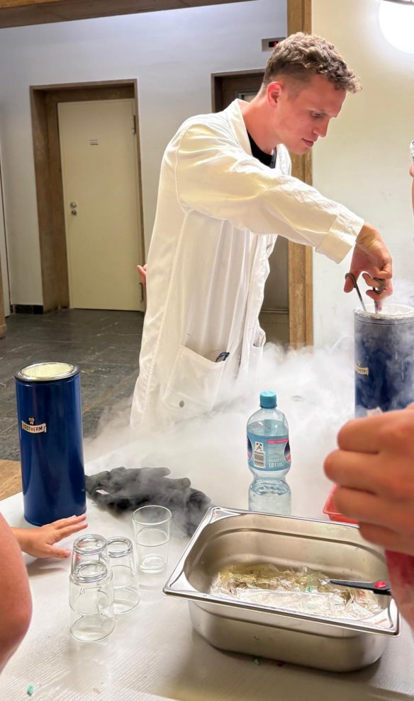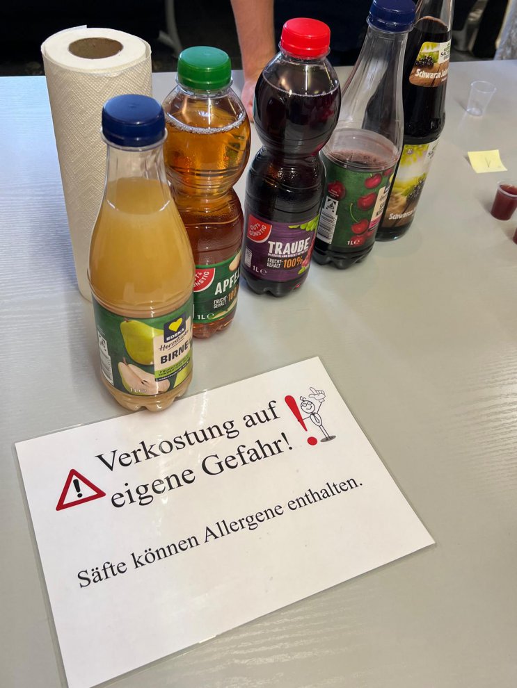 Am 04.07. fand an der MLU in Halle/Saale die Lange Nacht der Wissenschaften statt, bei der wir als AG JLC Halle eine Verkostung mehrerer Saftmischungen für Groß und Klein organisiert haben. Es sollte hier herausgefunden werden, welche beiden Säfte gemixt wurden, ohne sich von den jeweils recht ähnlichen Farben täuschen zu lassen. Mit der richtigen Antwort konnten die Kinder zudem an der MINT-Ralley teilnehmen, die zur Erkundung von verschiedenen Naturwissenschaften dient. Neben der Saftverkostung konnten die Besucher:innen sich an verschiedenen Quizzes rund um das Thema Lebensmittelchemie versuchen und Wassereis probieren, das vor Ort mit flüssigem Stickstoff eisgekühlt wurde.