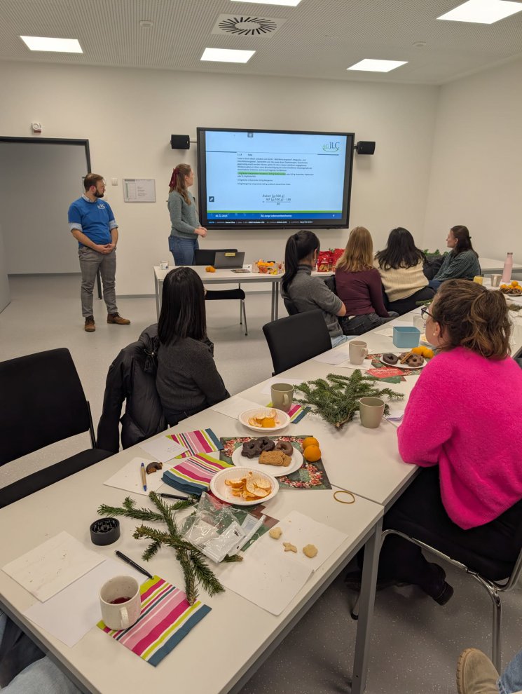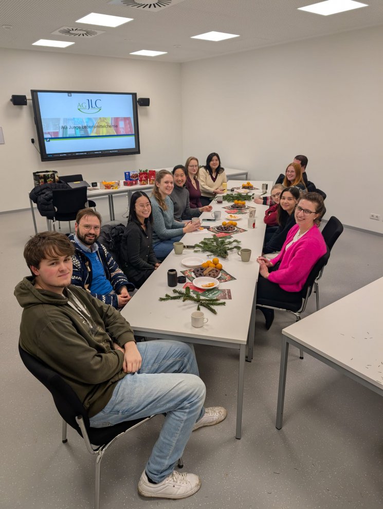 Nachdem es die letzten Jahre keine Adventsfeier in der Lebensmittelchemie in Bonn gegeben hatte, hat sich die AG für dieses Jahr etwas Besonderes überlegt: das Adventssymposium am 10.12 verband eine gesellige Weihnachtsfeier mit der Möglichkeit, etwas über verbraucherrelevante Themen zu lernen. Das Highlight war eine weihnachtliche Sensorik, bei der die Teilnehmenden selbstgebackene Plätzchen verkosten durften. Ob man auch im Blindversuch einen Unterschied zwischen Butter und Margarine oder zwischen Kuvertüre und Fettglasur herausschmecken kann? Auf jeden Fall! Anschließend gab es einige Infos, wie diese Parameter analysiert werden, wie die Regulierung dazu aussieht und wie viele Zimtsterne man eigentlich täglich essen kann, ohne den TDI für Cumarin zu überschreiten. Anschließend konnten die Teilnehmenden den Abend bei einem heißen Punsch gemütlich ausklingen lassen.