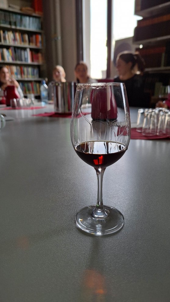 Herr Kröning begann mit einer informativen Präsentation, in der der Weinkontrolleur seine berufliche Tätigkeit am LAVES und sein vielfältiges Berufsbild vorstellte. Er präsentierte sechs verschiedene Weine, welche im Anschluss an die Präsentation verkostet wurden. Herr Kröning ermutigte die Teilnehmenden dazu, die wahrgenommenen Geruchs- und Geschmackseindrücke anhand des sensorischen Vokabulars auf mitgebrachten Aromarädern zu beschreiben.